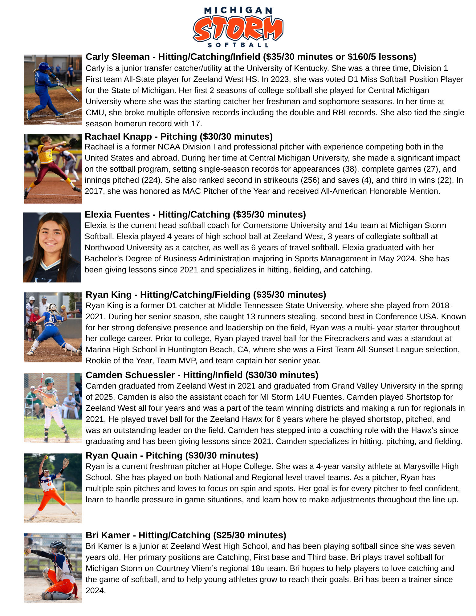Hitting, Fielding, Catching, Pitching, and Throwing instruction is open to all Storm players as well as any community player that are looking to further develop their softball and baseball skills.